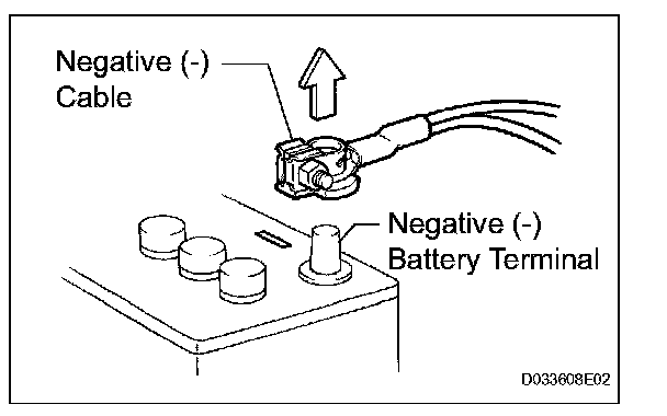 1. Before performing electronic work, disconnect the cable from the negative (-) battery terminal to prevent component and wire damage caused by accidental short circuits.