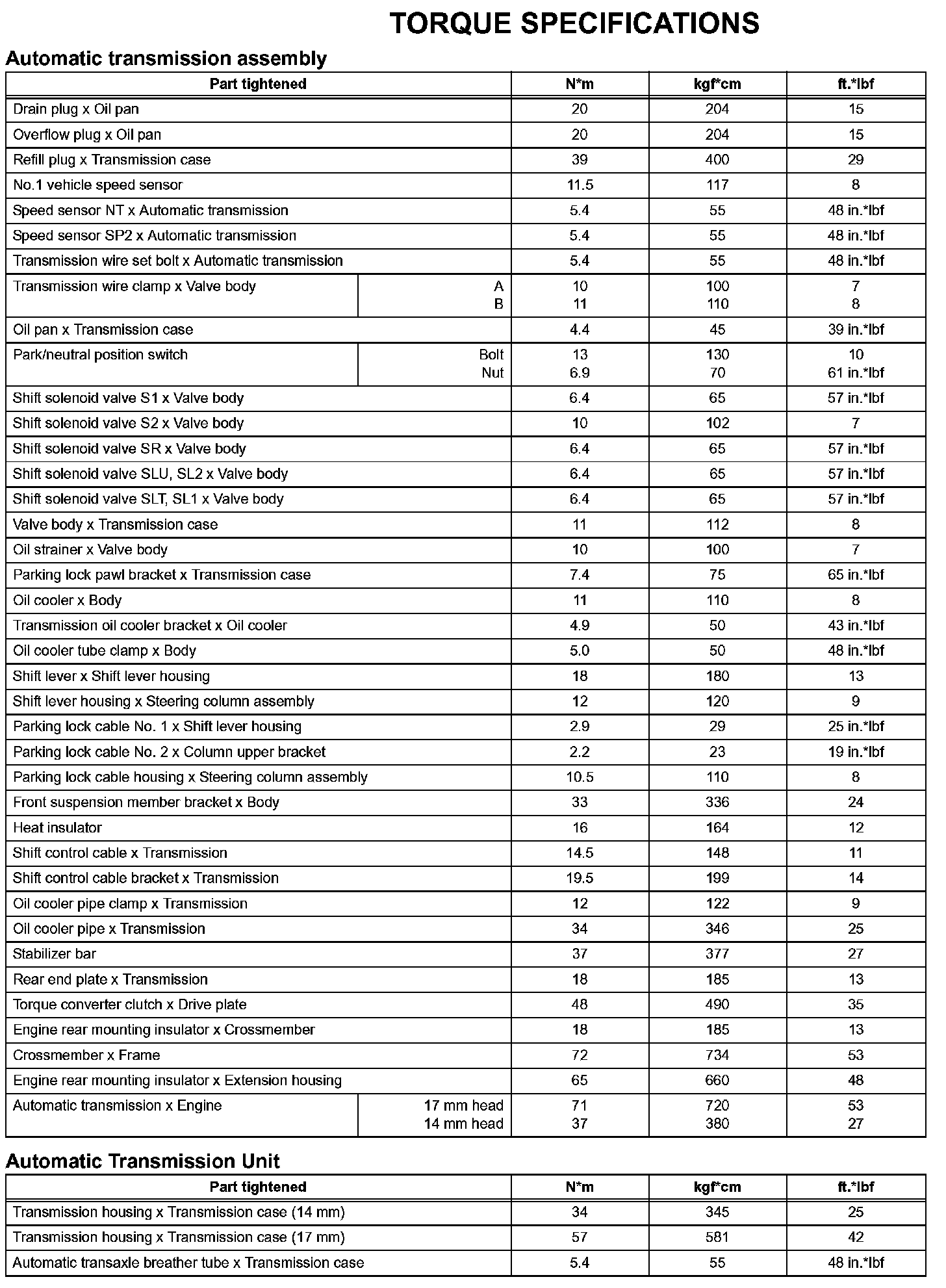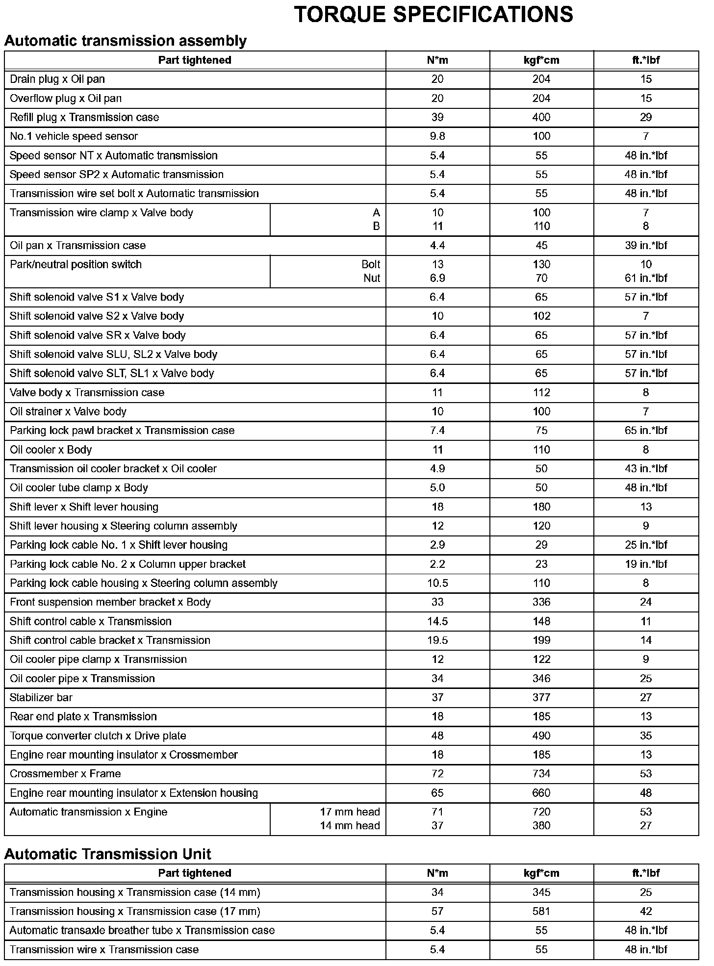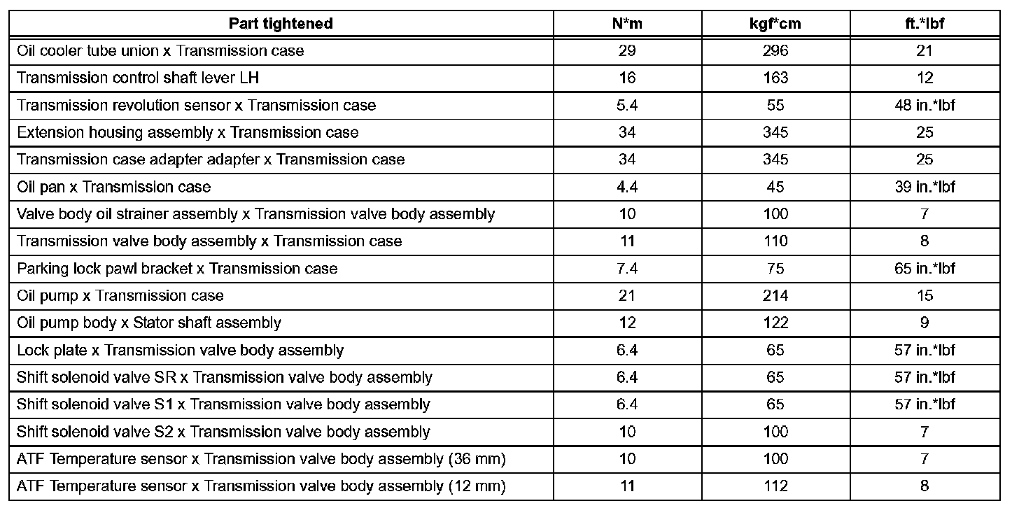 Automatic Transmission-Torque Specifications (Part 1):