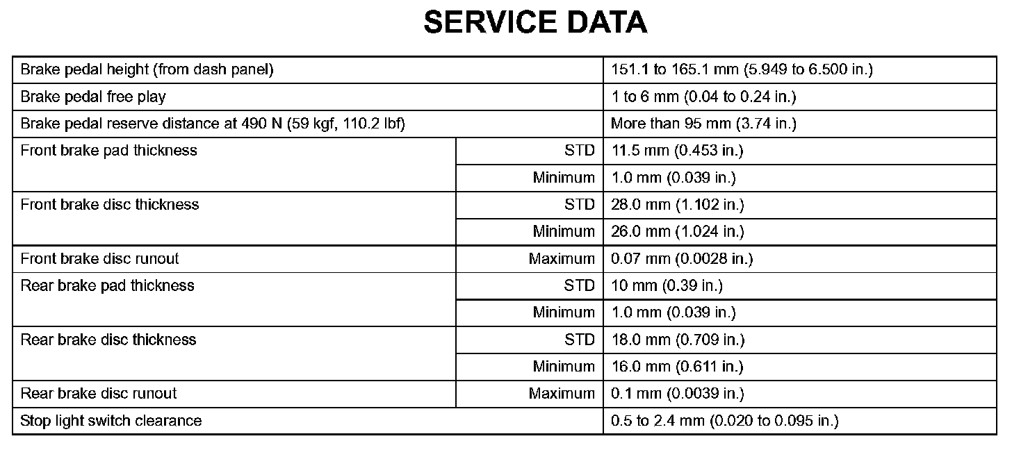Brake - Service Data: