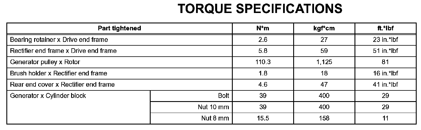 Charging - Torque Specifications: