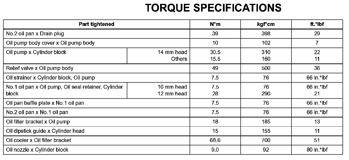 Lubrication - Torque Specifications: