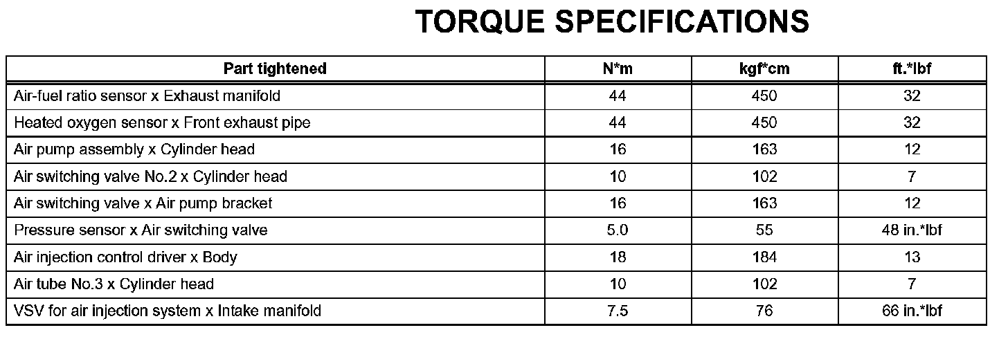 Emission Control - Torque Specifications: