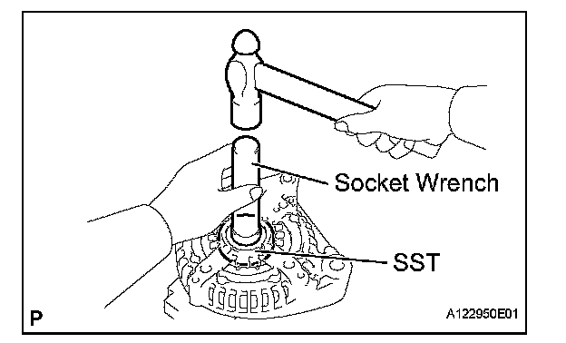 b. Using SST and a hammer, tap out the bearing.