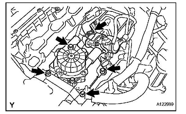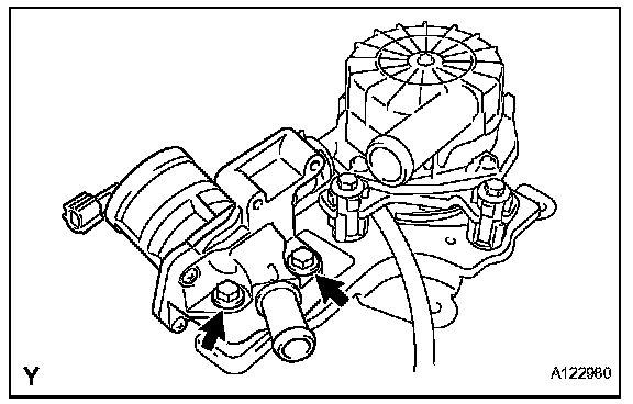 b. Install 2 new gaskets and 2 No.2 air switching valves with the 4 bolts to the rear water by-pass joint.