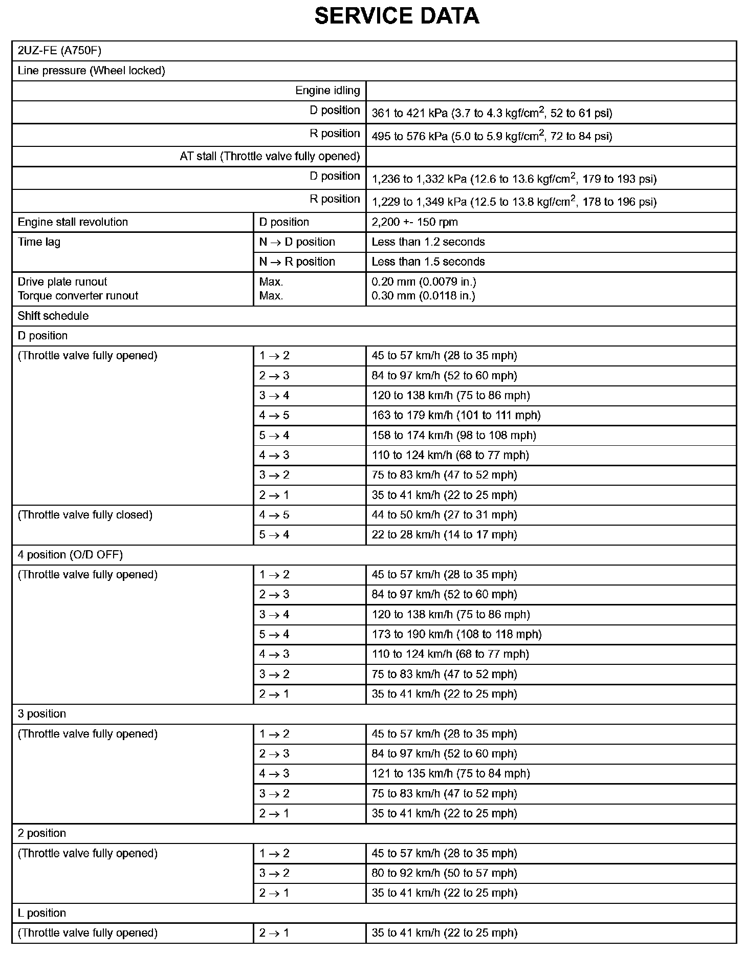 Automatic Transmission - Service Data (Part 2):