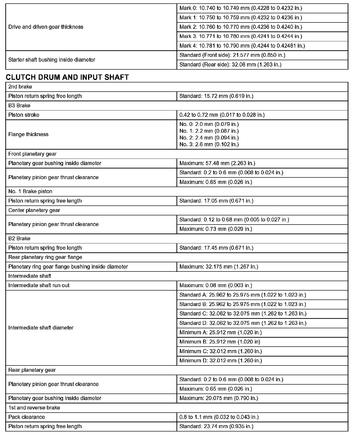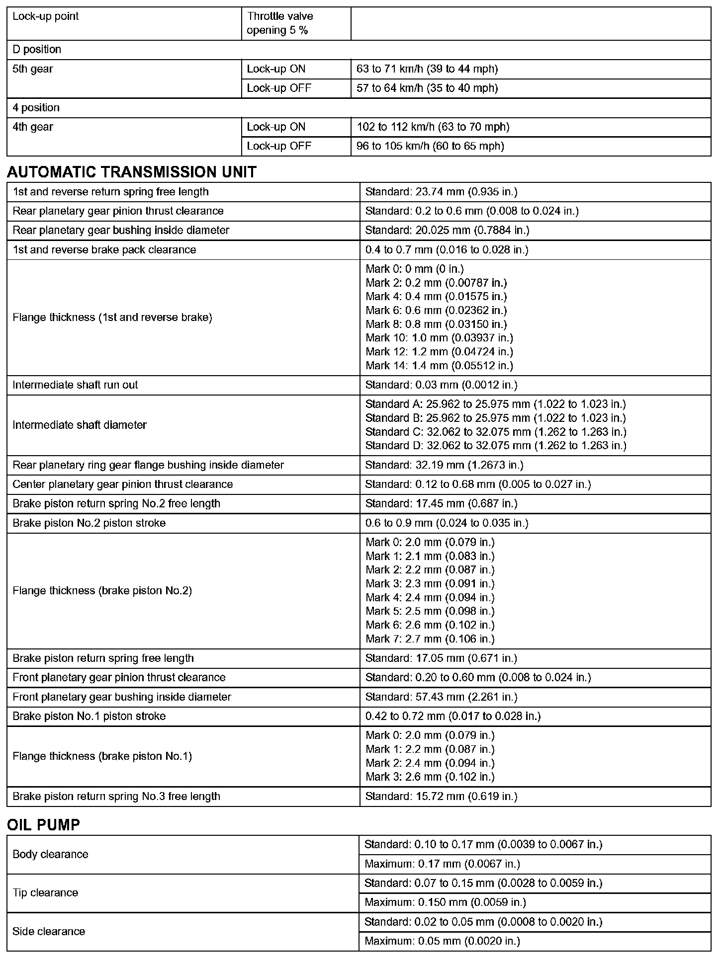 Automatic Transmission - Service Data (Part 4):
