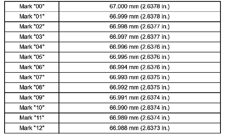 Main Journal Diameter 66.988 to 67.000 mm (2.6373 to 2.6378 inch)