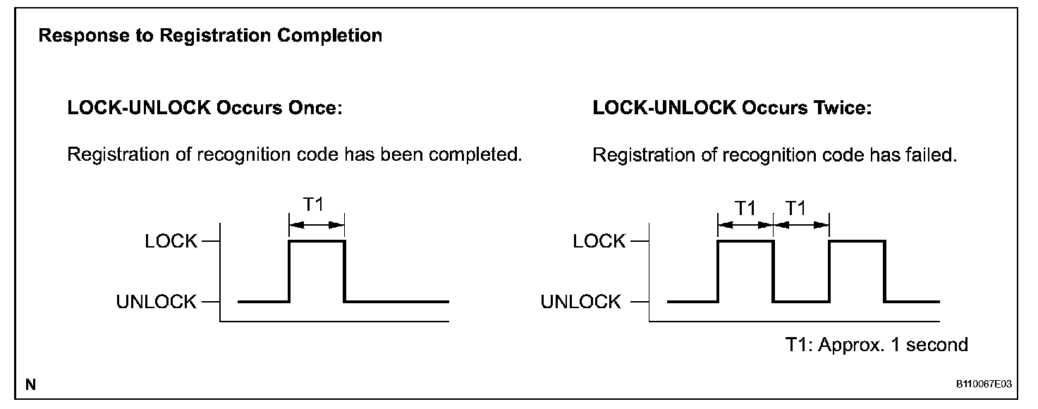 HINT: If the LOCK-UNLOCK operation is performed twice, registration of the recognition code has failed Perform registration procedures from the beginning once again.