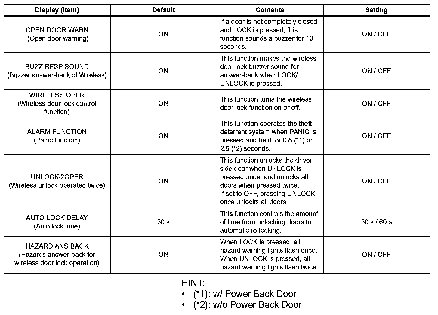 CUSTOMIZE PARAMETERSHINT: The following items can be customized.