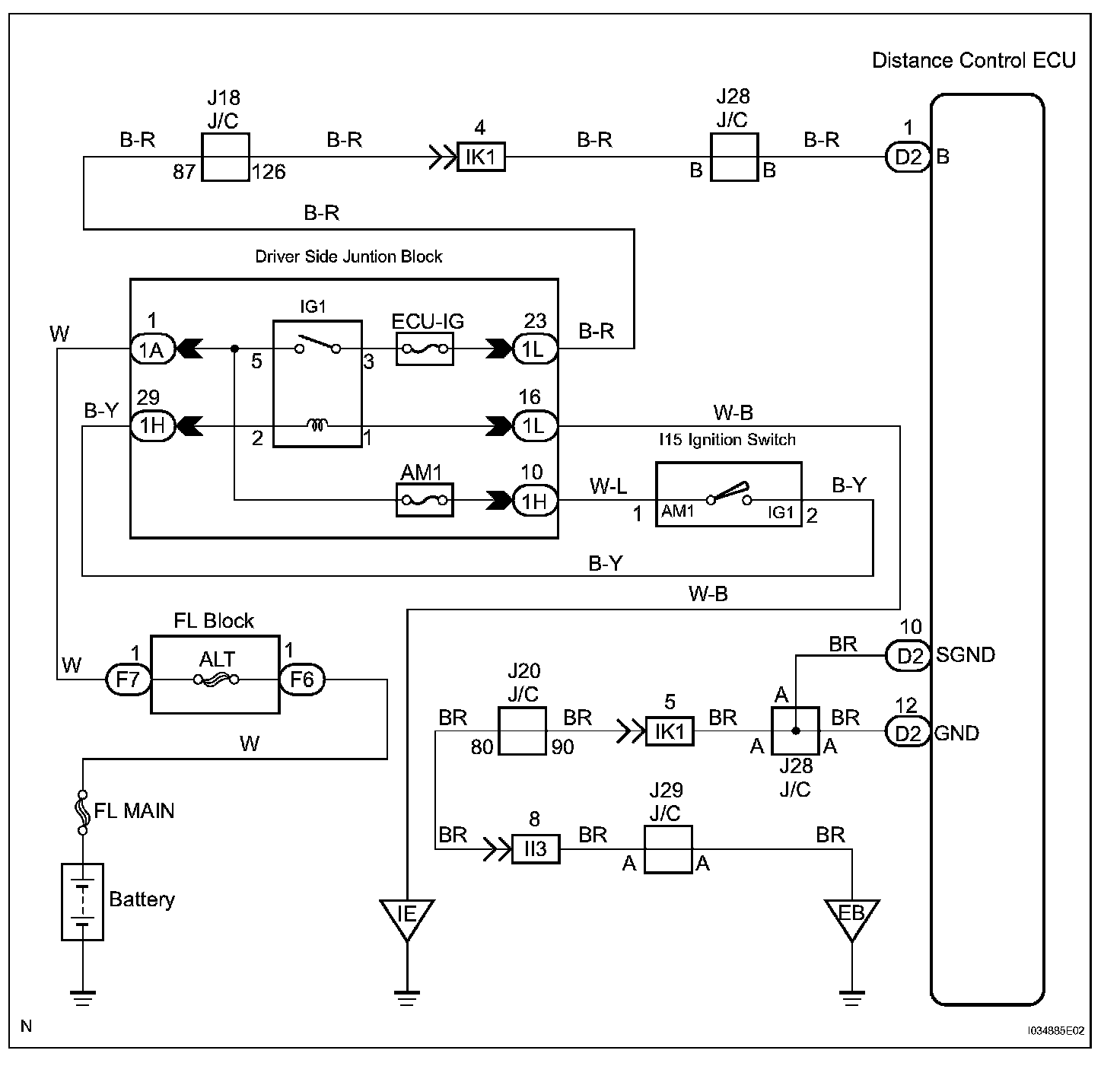 Distance Control ECU Power Source Circuit