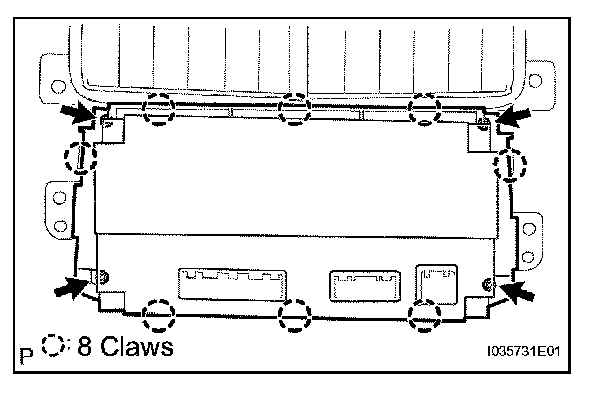 a. Release the 2 claws fittings and remove the center cluster module knob No. 2.