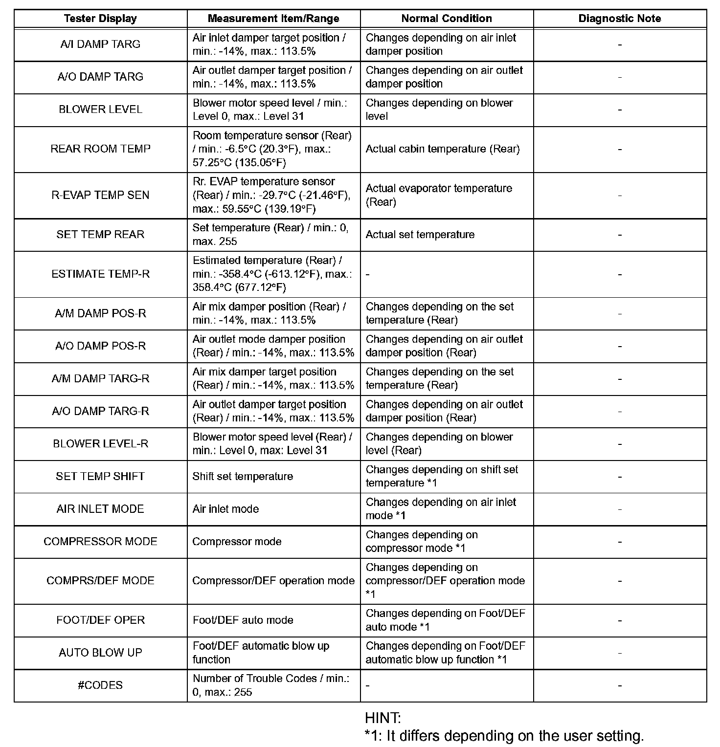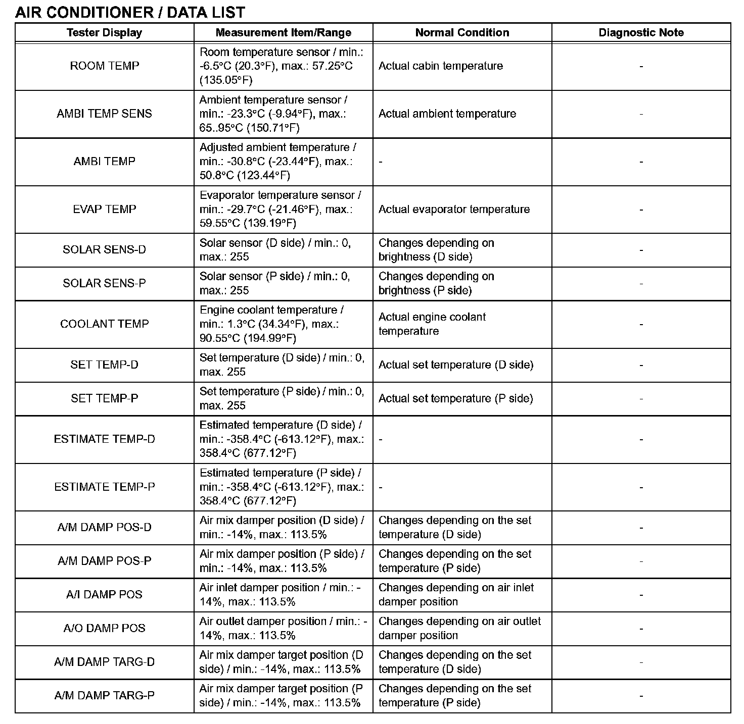 DATA LISTHINT: Using the intelligent tester to read the Data List allows the values or states of switches, sensors, actuators and other items to be read without removing any parts. This non-intrusive inspection can be very useful because intermittent conditions or signals may be discovered before parts or wiring is disturbed. Reading the Data List information early in troubleshooting is one way to save diagnostic time.