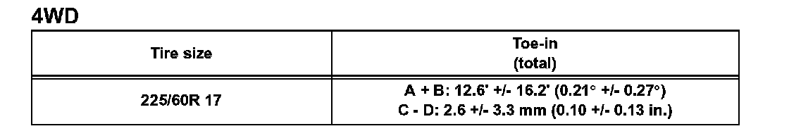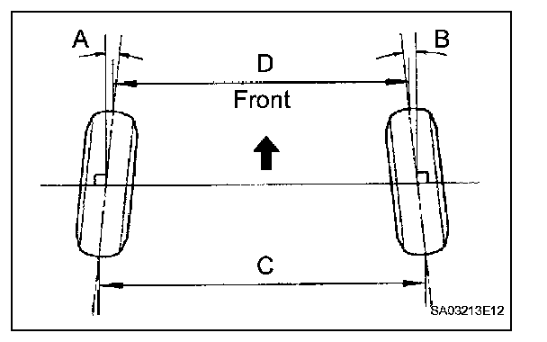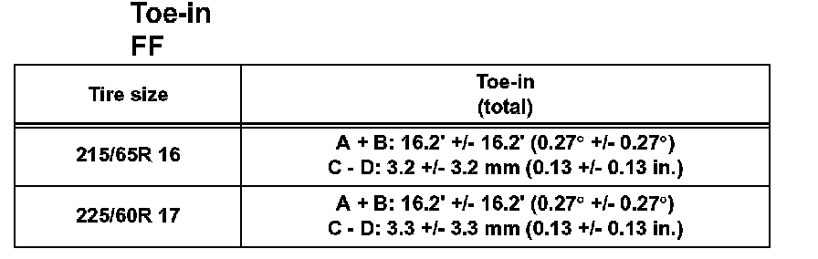 HINT: If the toe-in is not within the specified value, inspect the suspension parts and replace them if necessary.