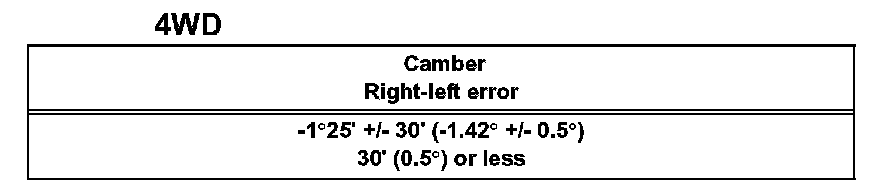 HINT: If the measured value is not within the specified value, inspect the suspension parts for damage and the wear and replace them if necessary because camber is not adjustable.