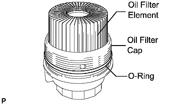 (f) Remove the oil filter element and O-ring from the oil filter cap.