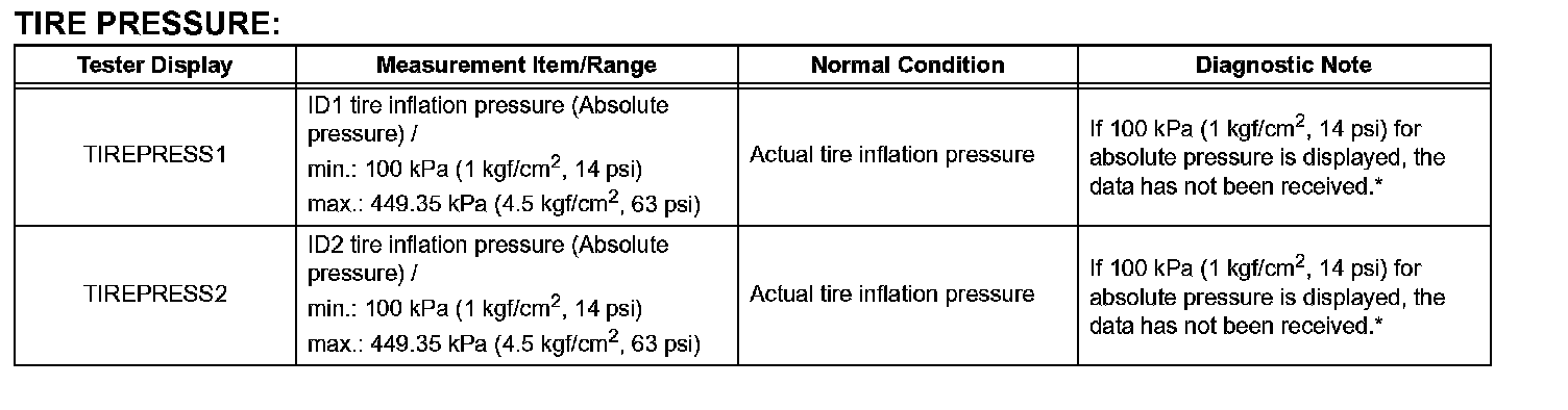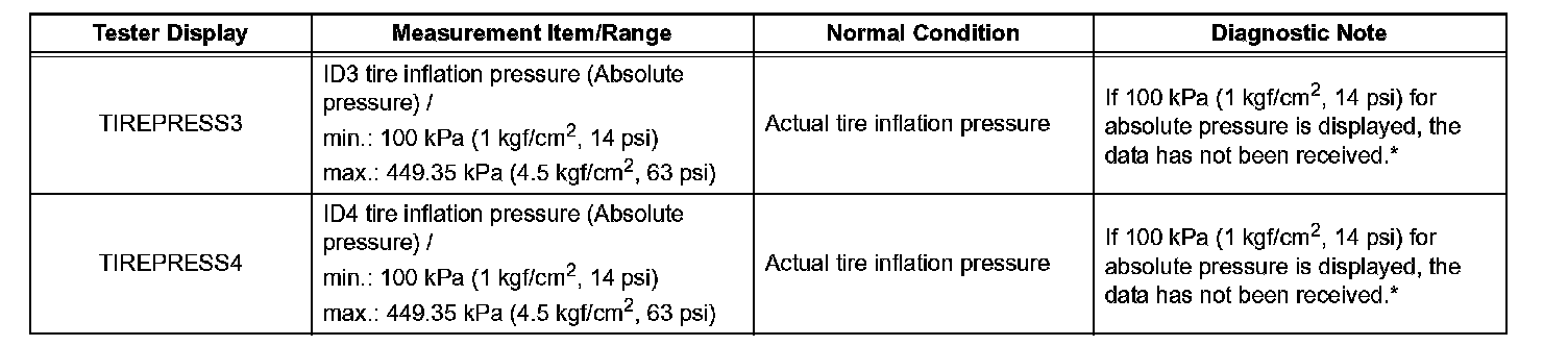 (a) Confirm that the data of tire pressure of all tires are displayed on the intelligent tester screen.