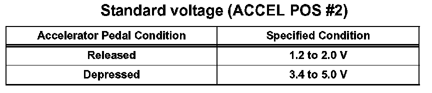 5. Operate the accelerator pedal, and then check that the ACCEL POS #1 and ACCEL POS #2 values are within the specifications.