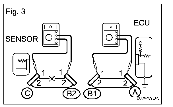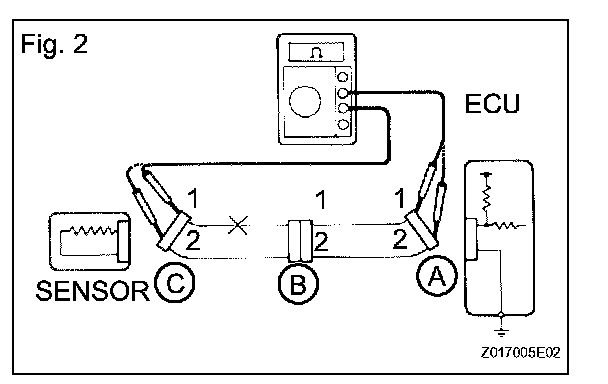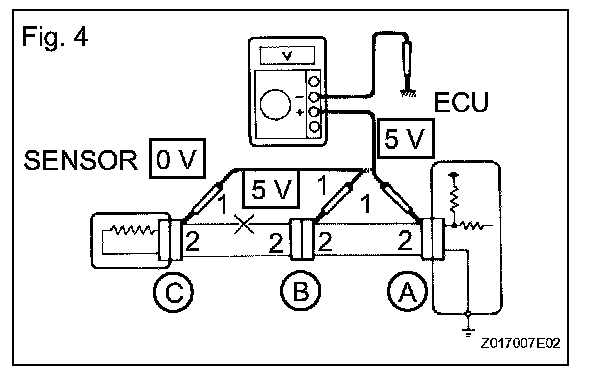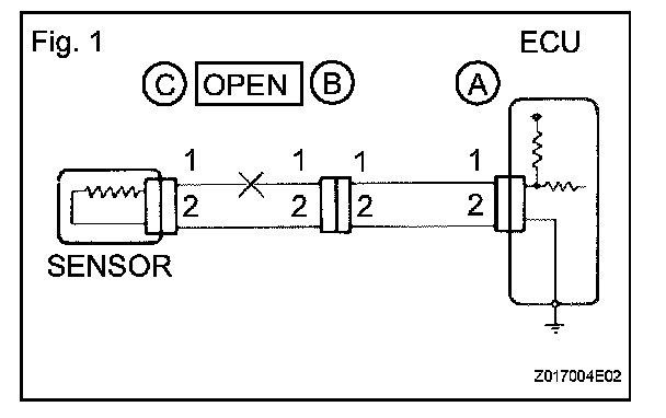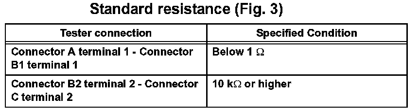 CHECK FOR OPEN CIRCUITa. For an open circuit in the wire harness in Fig. 1, the resistance or voltage, as described below.