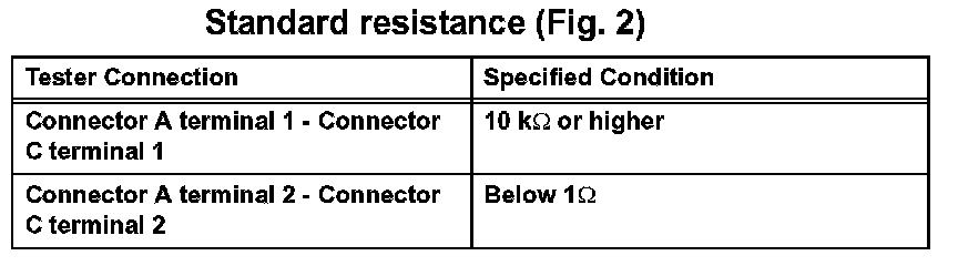 1. Disconnect connectors A and C and measure the resistance between the terminals of the connectors.