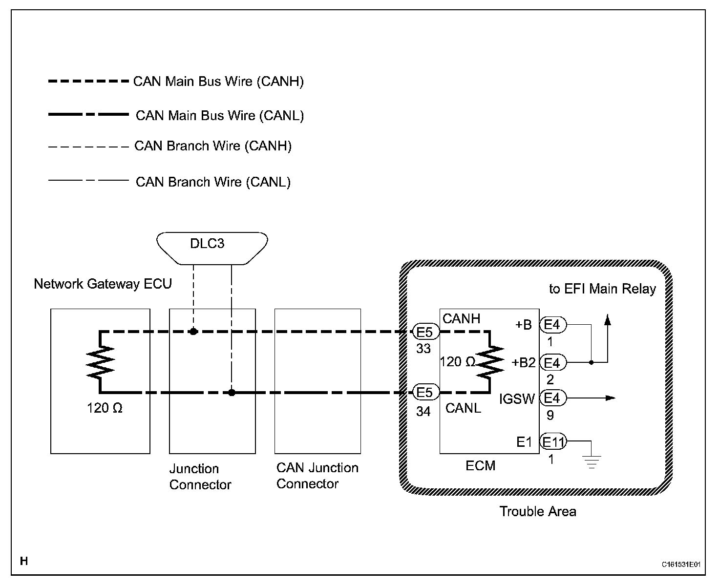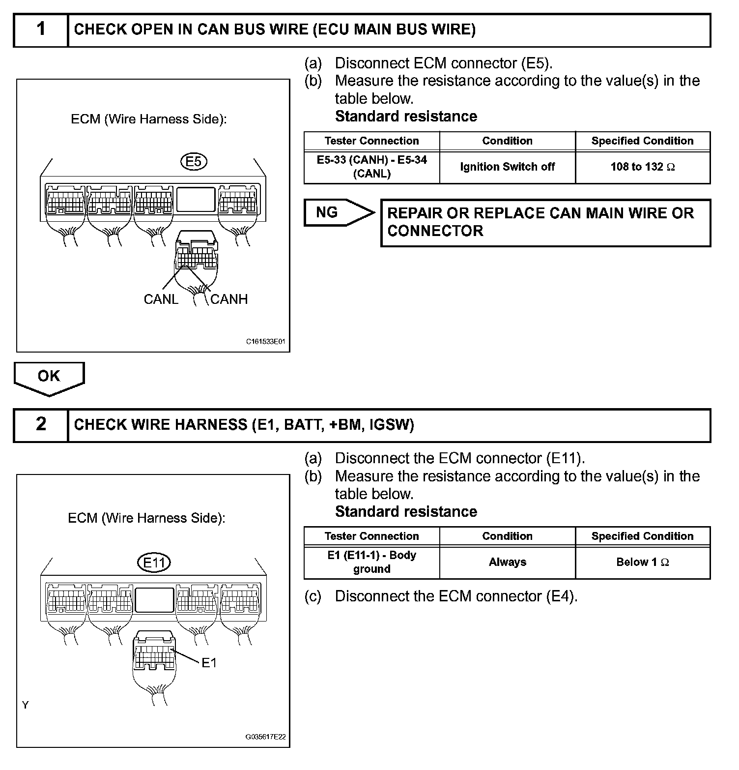 - Turn the ignition switch off before measuring the resistances of CAN bus main wires and CAN bus branch wires.