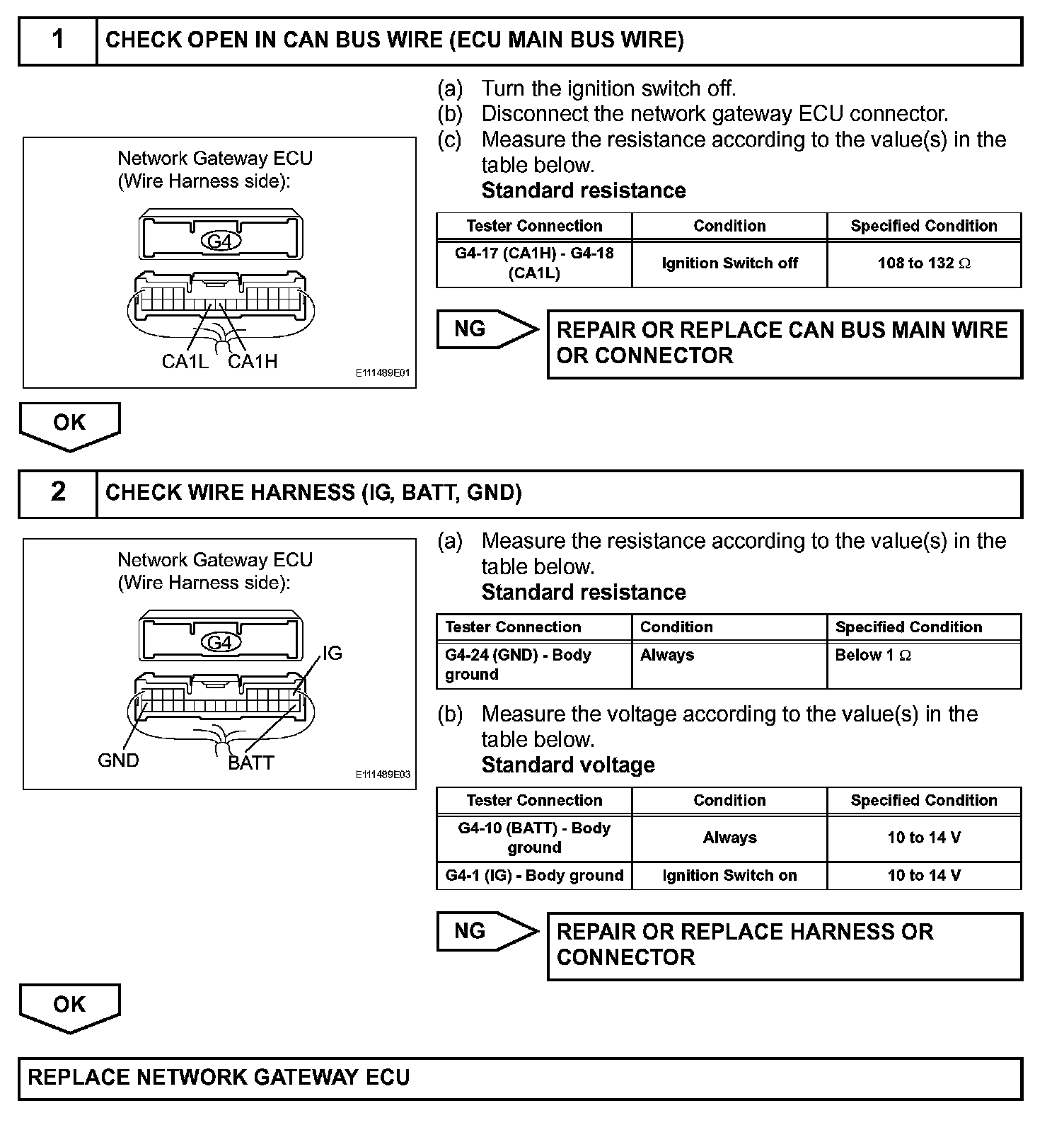 - Turn the ignition switch off before measuring the resistances of CAN bus main wires and CAN bus branch wires.