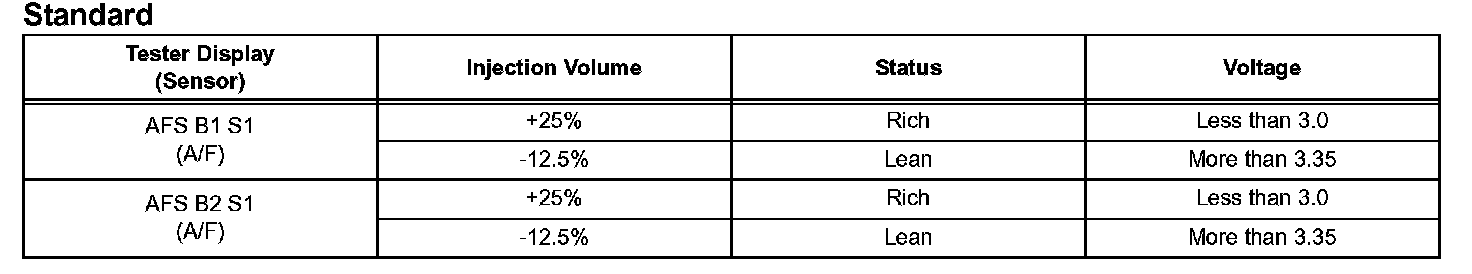 - The A/F CONTROL operation lowers the fuel injection volume by 12.5% or increases the injection volume by 25%.