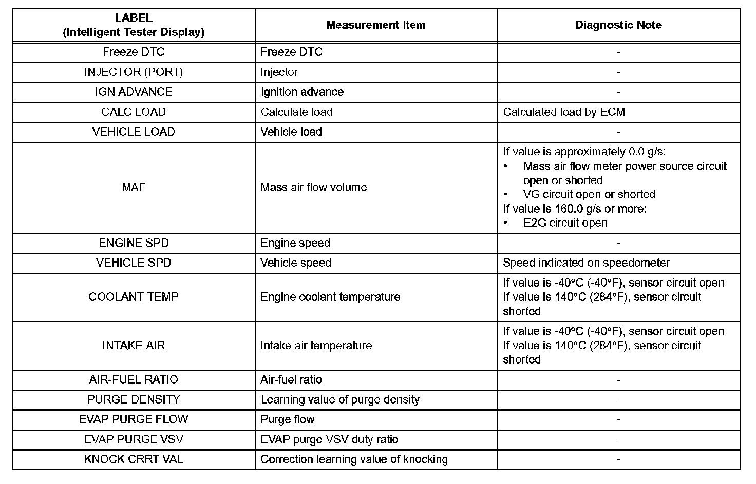 HINT: If it is impossible to duplicate the problem even though a DTC is detected, confirm the freeze frame data.