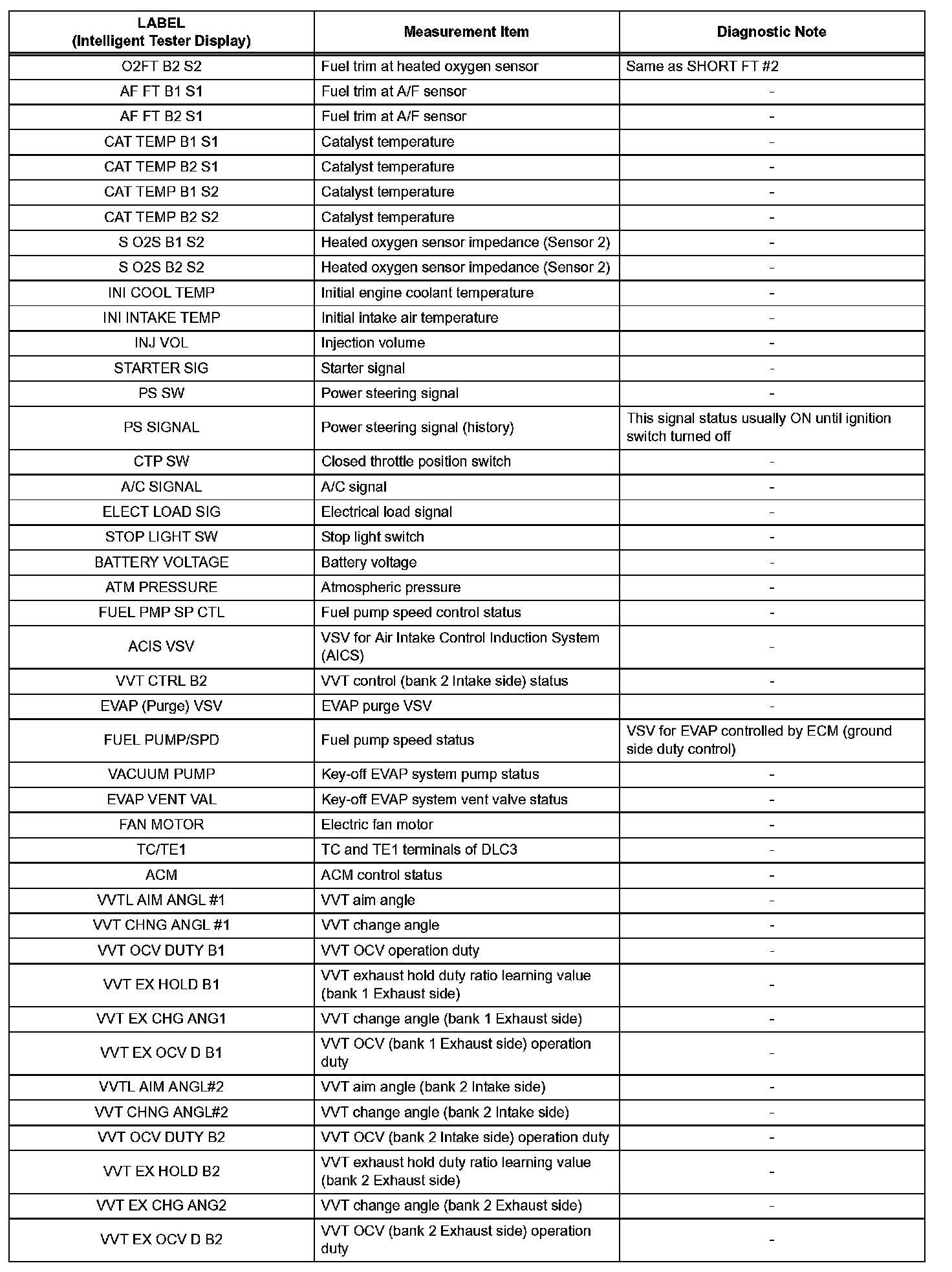 a. The ECM records vehicle and driving condition information as freeze frame data the moment a DTC is stored. When troubleshooting, freeze frame data can be helpful in determining whether the vehicle was running or stopped, whether the engine was warmed up or not, whether the air-fuel ratio was lean or rich, as well as other data recorded at the time of a malfunction.