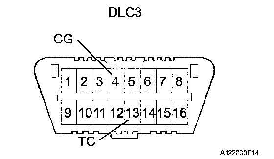 (6) Disconnect terminals 13 (TC) and 4 (CG) of the DLC3.