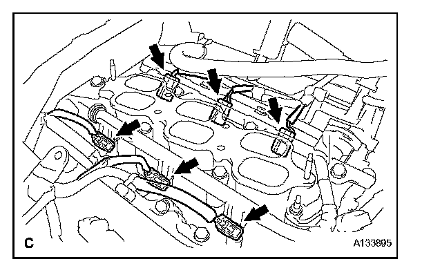 2. Install the spark plugs to each ignition coil, and connect the ignition coil connectors.