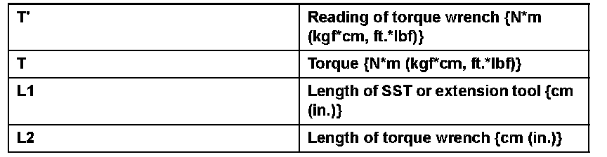 1. Use the formula below to calculate special torque values for situations where SST or an extension tool is combined with the torque wrench.
