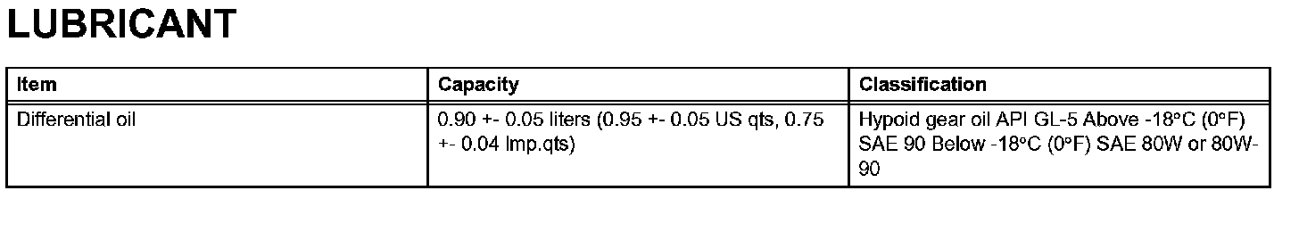 Differential - Lubricant: