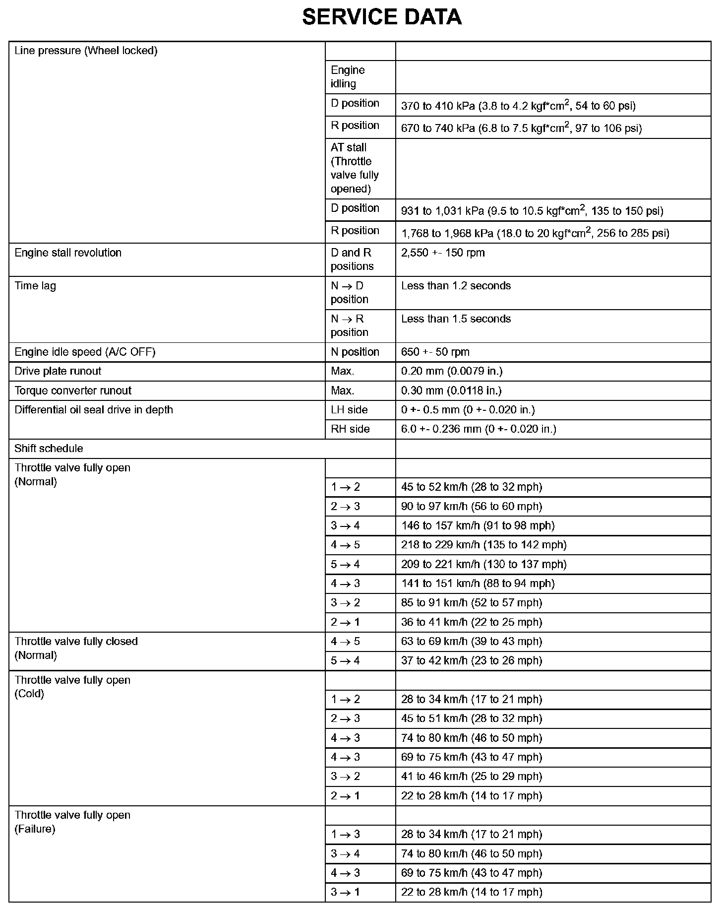 Automatic Transaxle - Service Data (Part 1):