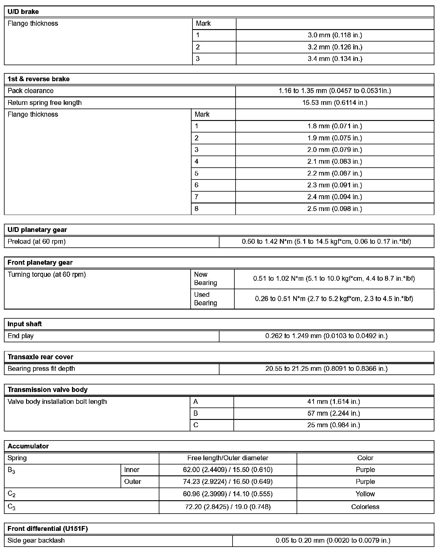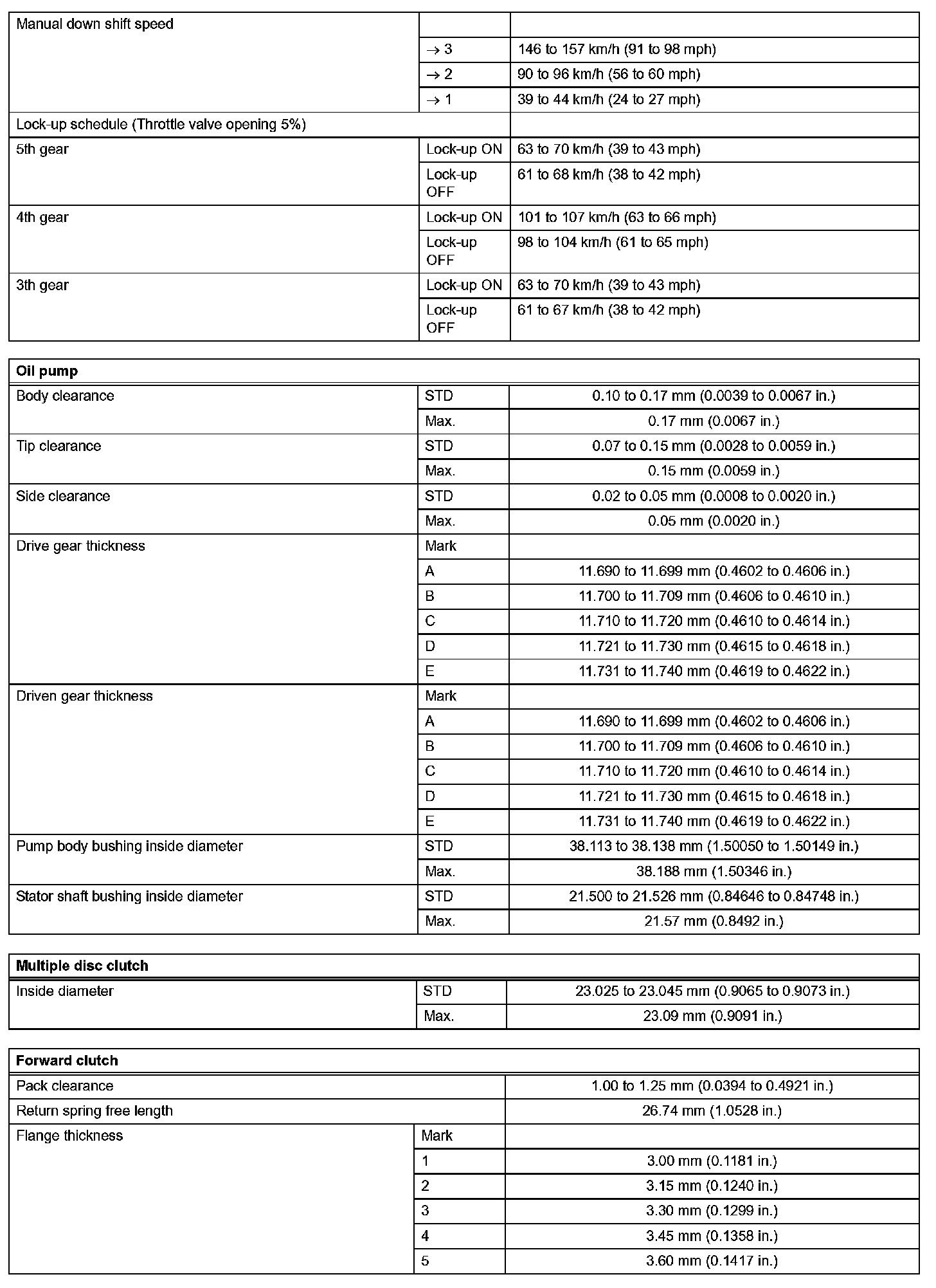 Automatic Transaxle - Service Data (Part 2):