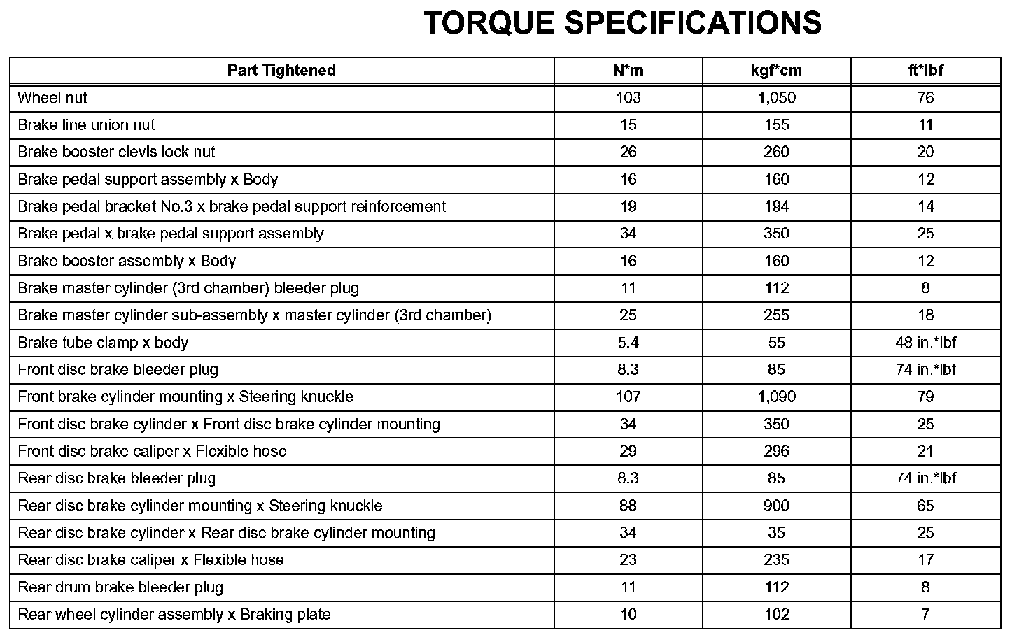 Brake - Torque Specifications: