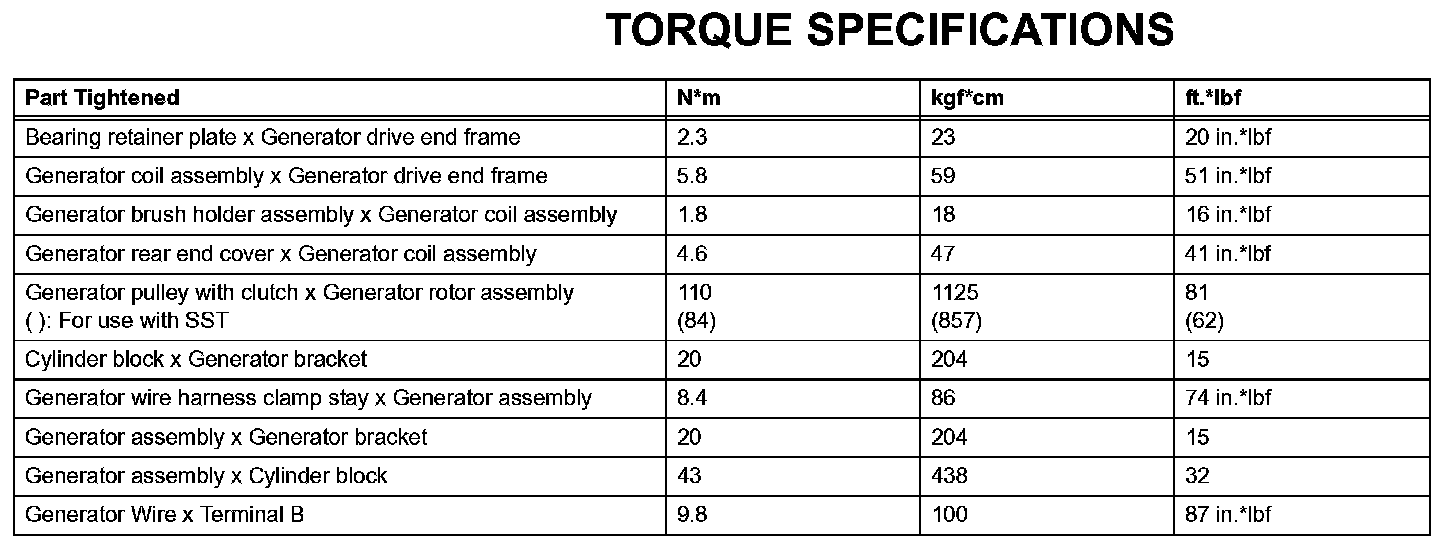 Charging - Torque Specifications: