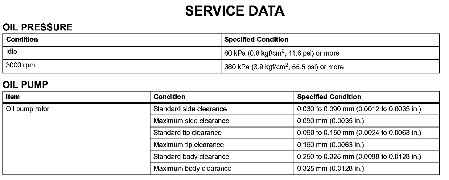 Lubrication - Service Data:
