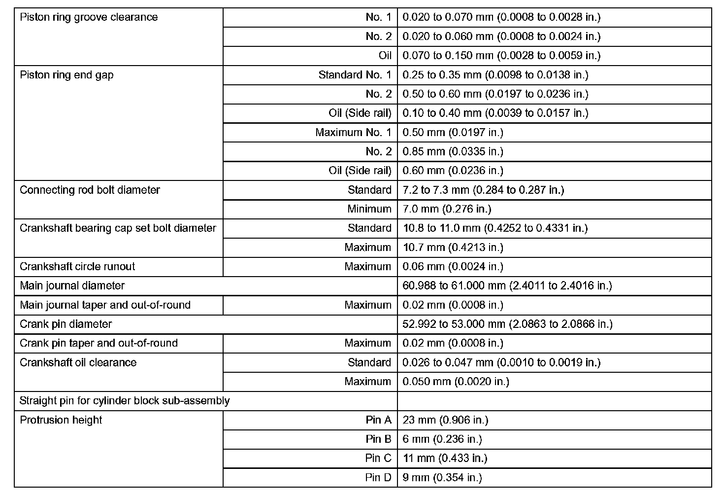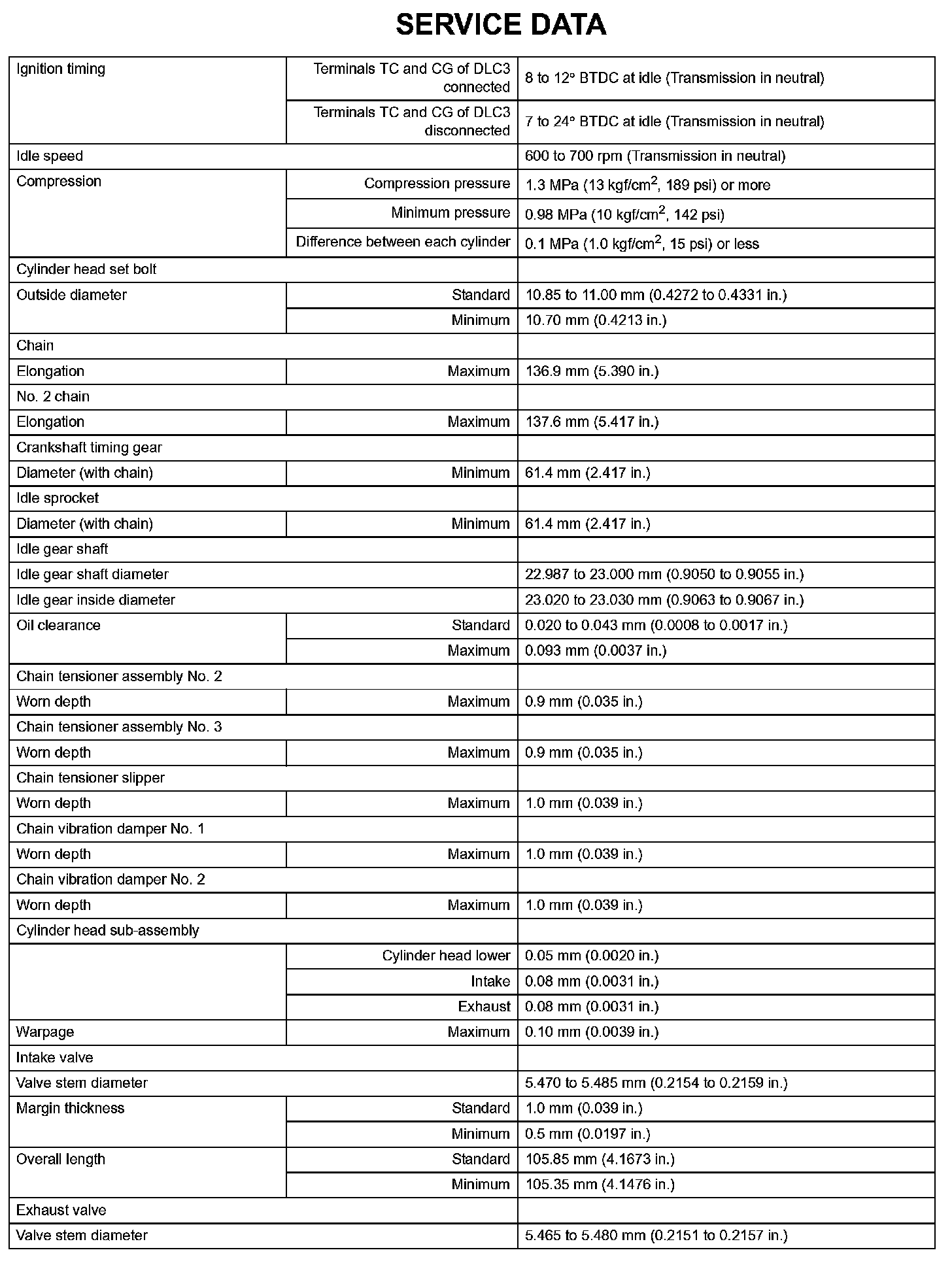 Engine Mechanical - Service Data (Part 1):