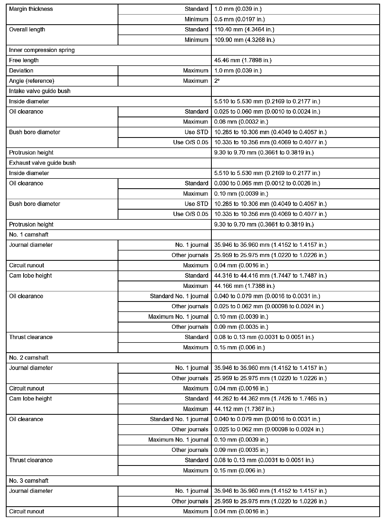 Engine Mechanical - Service Data (Part 2):