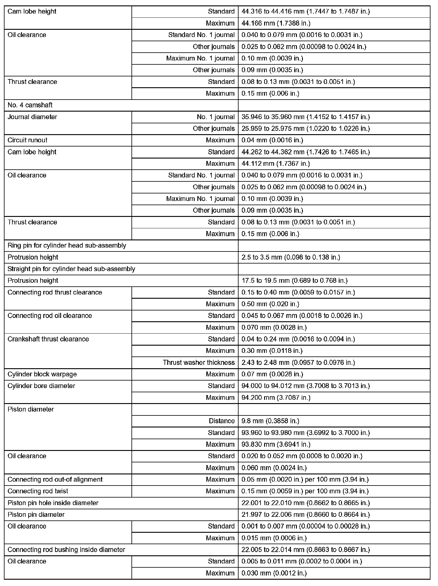 Engine Mechanical - Service Data (Part 4):