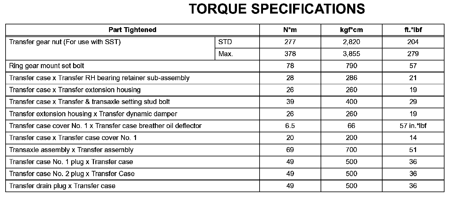 Transfer - Torque Specifications: