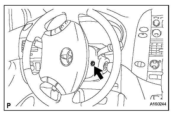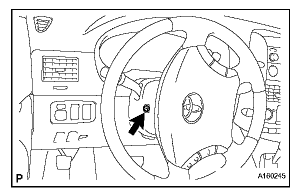 b. Turn the steering wheel clockwise to gain access to the screw and remove the screw.
