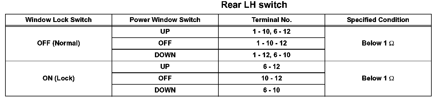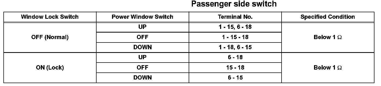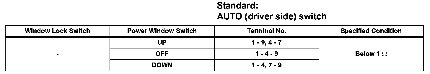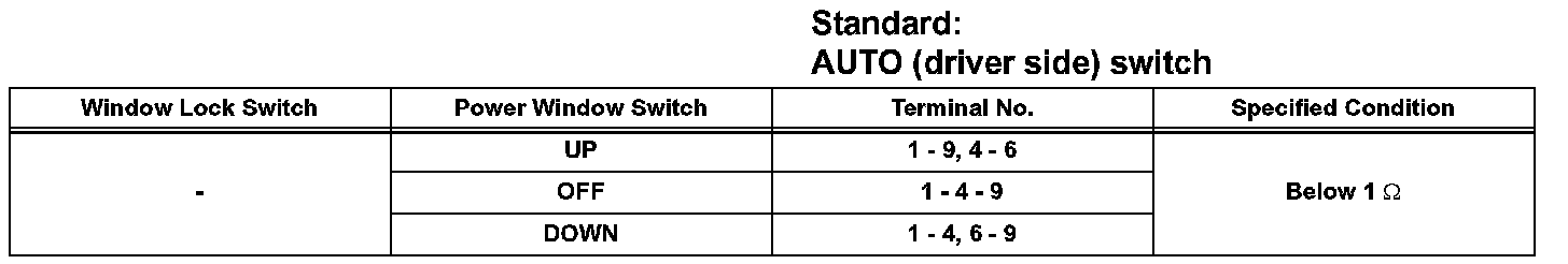 2. INSPECT POWER WINDOW REGULATOR MASTER SWITCH ASSEMBLY (w/o Jam Protection Function)