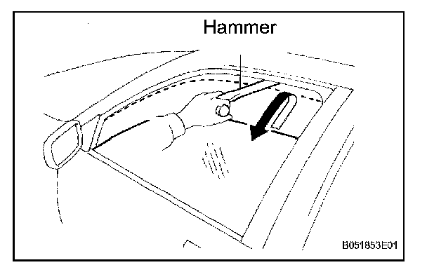 a. Check that the door glass goes down by approx. 50 mm (1.97 in.) right when something gets caught between the door frame and door glass during power window operation. However, when the opening between the door frame and the door glass is less than 200 mm (7.87 in.), the door glass keeps going down until the operation reaches 200 mm (7.87 in.) and stops there.