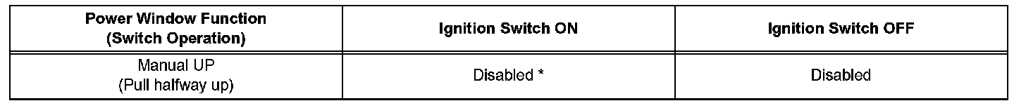 *: However, manual UP function of the power window is operative when fully pulling up the power window switch.