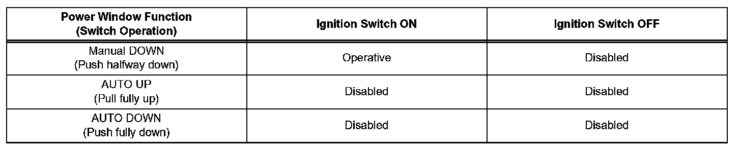 6. CHECK POWER WINDOW OPERATION FUNCTION AFTER IGNITION SWITCH IS TURNED OFF