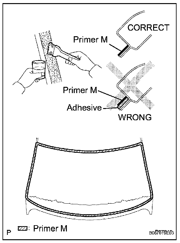 HINT: If the area other than that specified is coated by accident, wipe off the primer with a clean shop rag before it dries.
