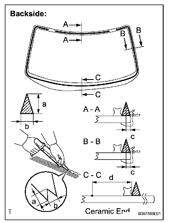 NOTICE: Leave as much adhesive on the vehicle body as possible when removing the glass.