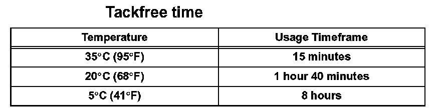 HINT: After cutting off the tip, use all adhesive within the time described in the table below.