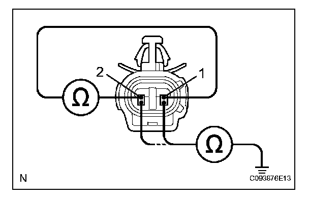 d. Measure the resistance between terminals 1 and 2 of the speed sensor connector and body ground.